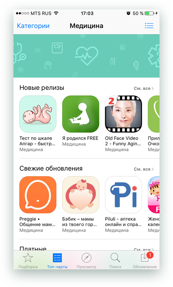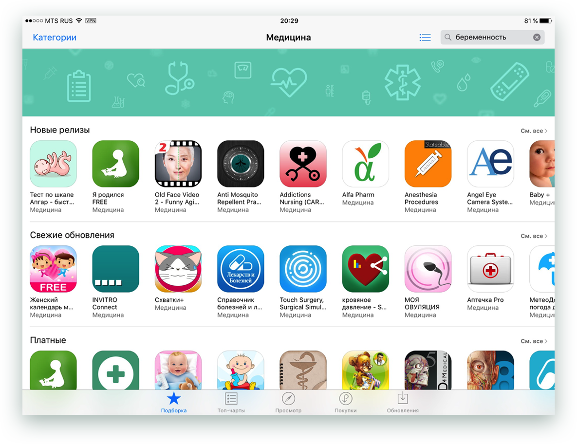 After analyzing the TOP-50 applications in the Medicine category, we concluded that the pregnancy topic is the most popular in this category among iOS device users.