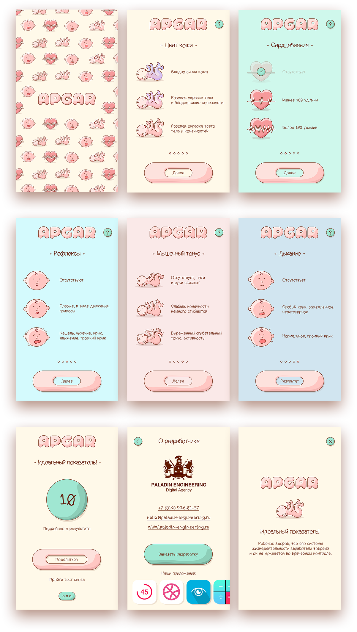 Based on the theme, it was decided to focus on soft colors and unique illustrations for each test item.