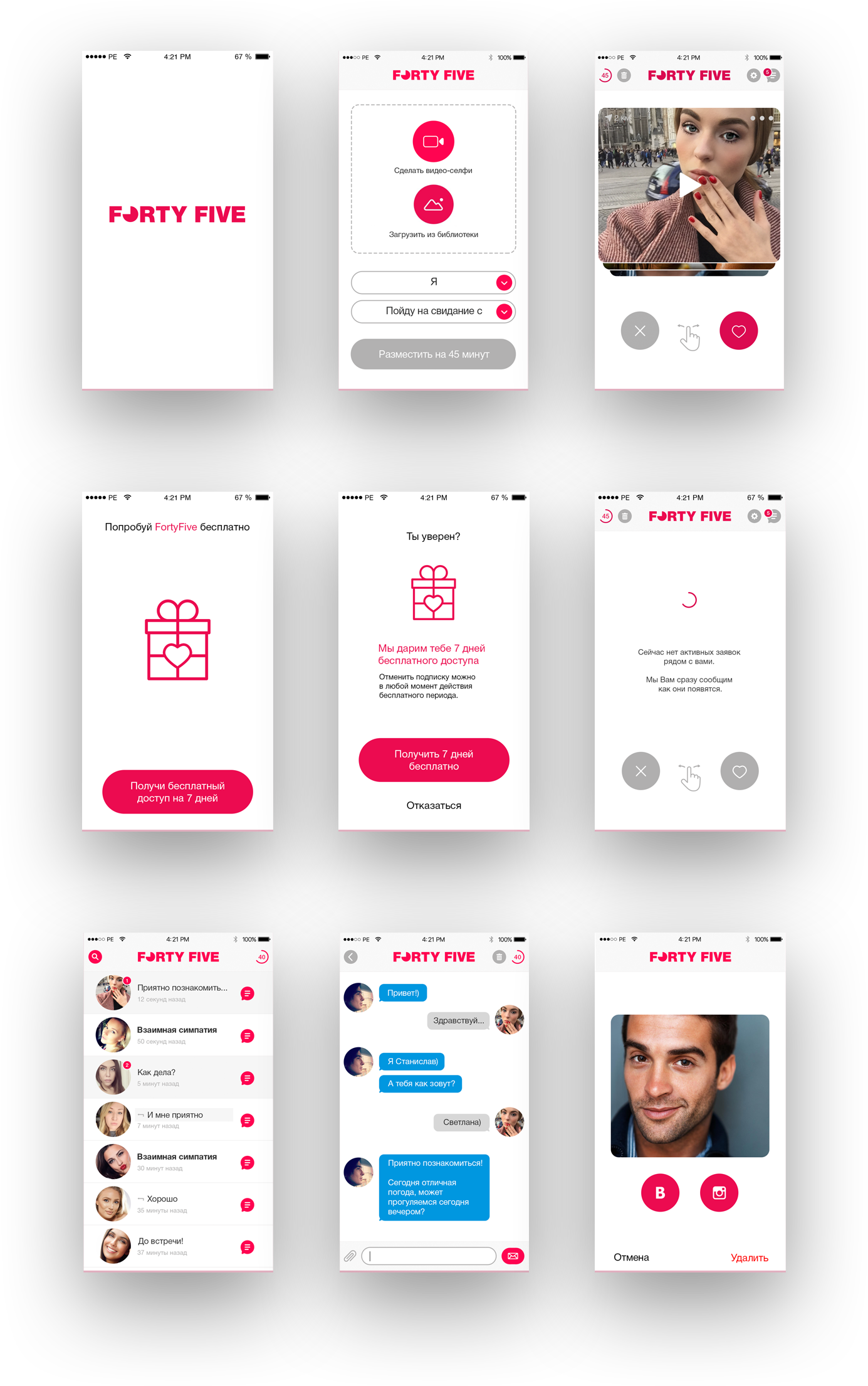 и просматривать видео-селфи, знакомиться и назначать встречу